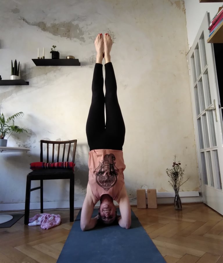 Yoga kam 2016 in mein Leben – eher zufällig, mit einem Gutschein für einen Beginner-Workshop. Ich war begeistert von der Vielfalt: Jede Klasse war anders, geprägt von verschiedenen Tools wie Klangschalen, kleinen Massagen und meditativen Elementen. Doch mein Magic Moment kam erst später: Der Kopfstand. Ich dachte: „Das ist unmöglich.“ Ich versuchte es trotzdem – und plötzlich stand ich auf dem Kopf!